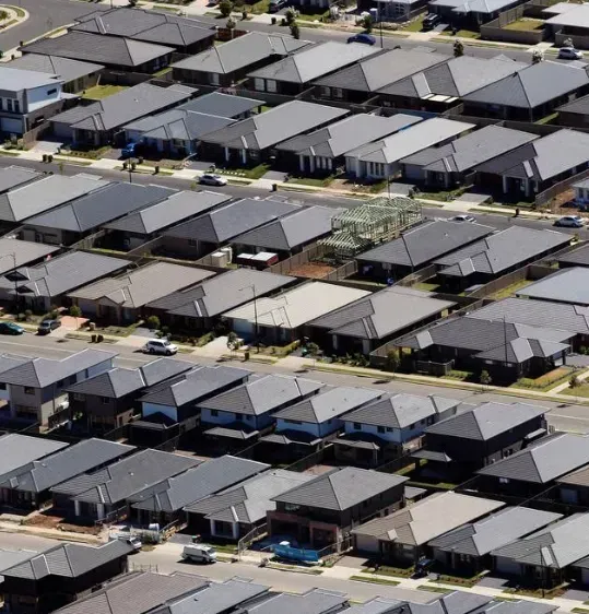 为什么悉尼很多新区的房产被吐槽为笼子!就是因为这些区域为了追求更高的居住密度,几乎完全牺牲了绿化,没有树木栽种,甚至没有公共绿地,一眼望去只有一片黑黢黢的屋顶!
