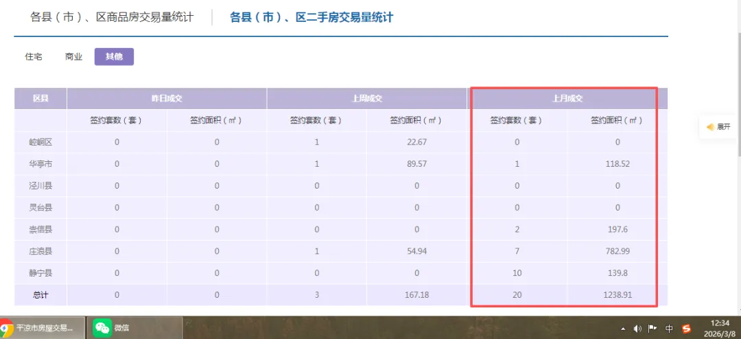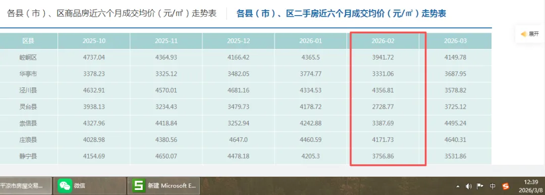 崆峒区、华亭、泾川、灵台、崇信、庄浪、静宁二手房交易价格分别是