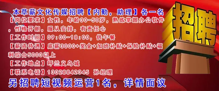 【招聘】会计助理,工作内容:熟悉财务软件,电子表格,配合会计工作及部门领导安排其它工作,工作时间早8.30 到晚16.30月休两天,工作地点:呼兰北头,联系电话:13125907577