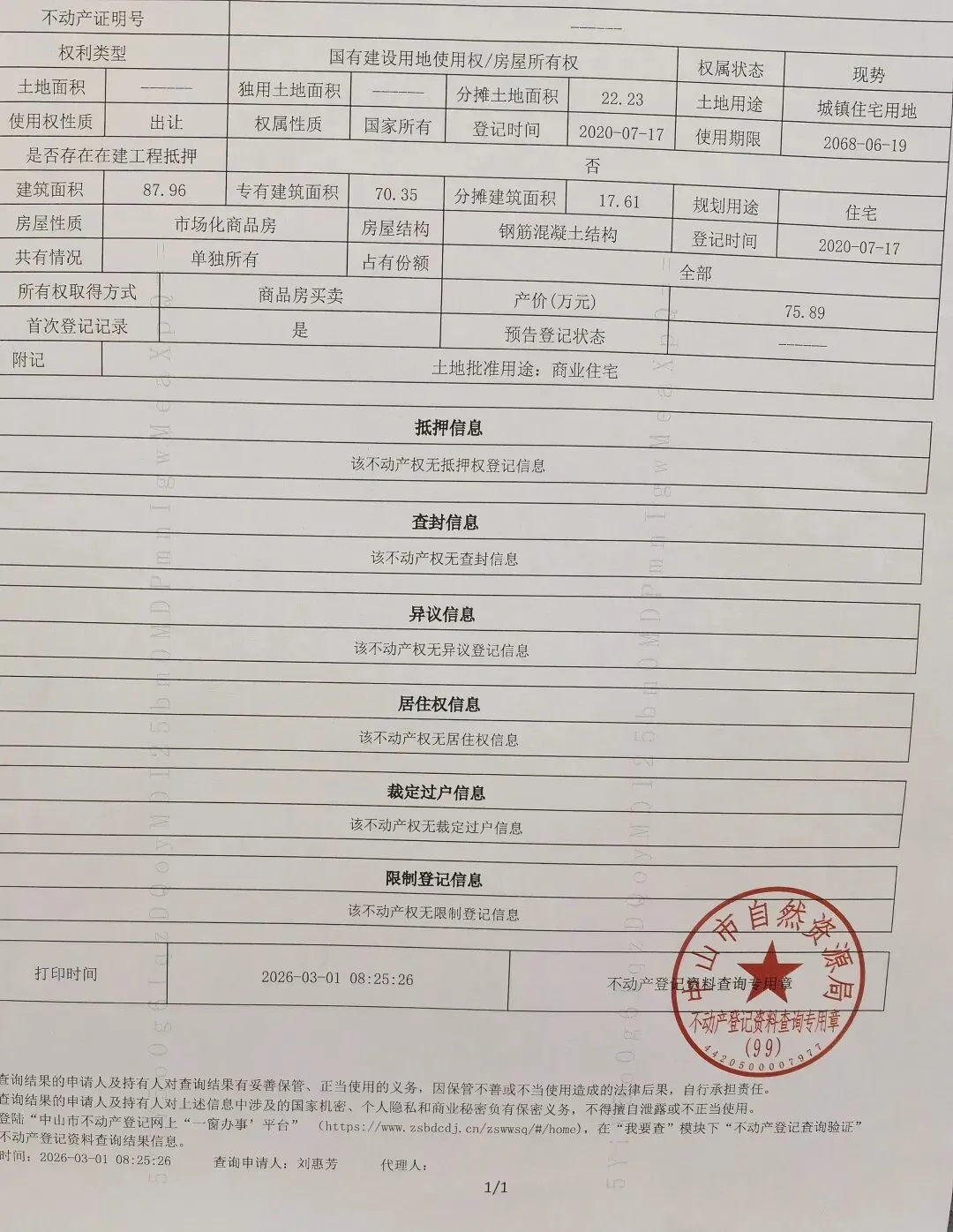 这套房子房产证的土地使用权还有42年,而房龄刚好6年。