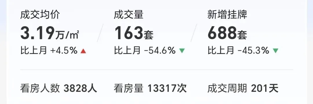 (1)本月二手房成交均价3.19万/平,环比上涨约4.5%;(注:成交均价——即统计日内,二手普通住宅的成交总价/成交总面积。)