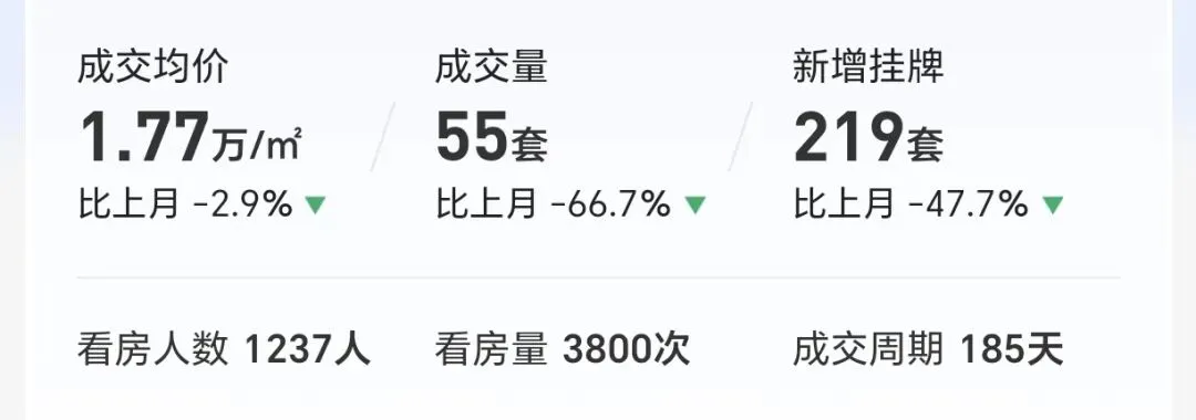 (1)本月二手房成交均价1.77万/平,环比下降约2.9%;(注:成交均价——即统计日内,二手普通住宅的成交总价/成交总面积。)