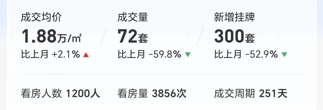(1)本月二手房成交均价1.88万/平,环比上涨约2.1%;(注:成交均价——即统计日内,二手普通住宅的成交总价/成交总面积。)