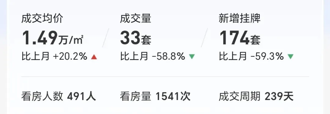 (1)本月二手房成交均价1.49万/平,环比上涨约20.2%;(注:成交均价——即统计日内,二手普通住宅的成交总价/成交总面积。)