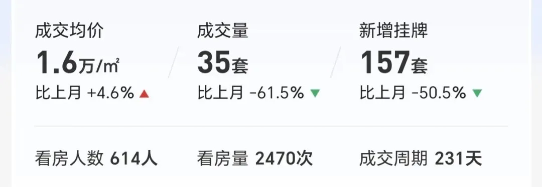 (3)本月新增挂牌房源157套,环比下降约50.5%;(注:新增挂牌房源——即统计日内,二手普通住宅的新增挂牌数。)
