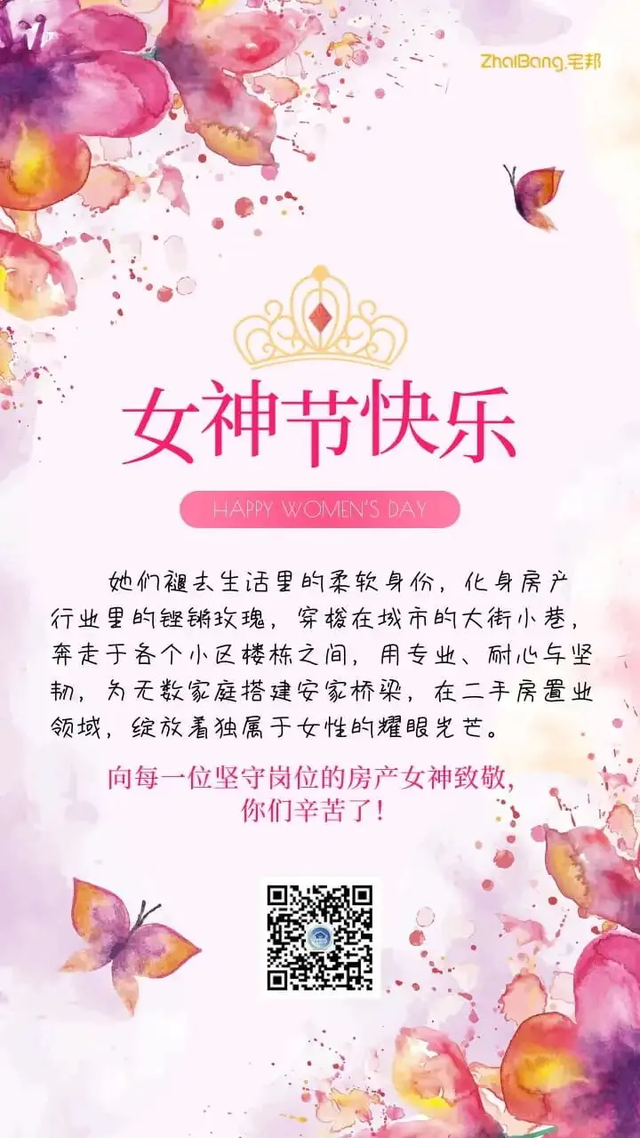 宅邦,汇聚专业靠谱女经纪人团队,深耕本地,用贴心服务换您安心安家。这个三八女神节,愿所有女神,眼里有光,心中有爱,既有事业的锋芒,也有生活的蜜糖!