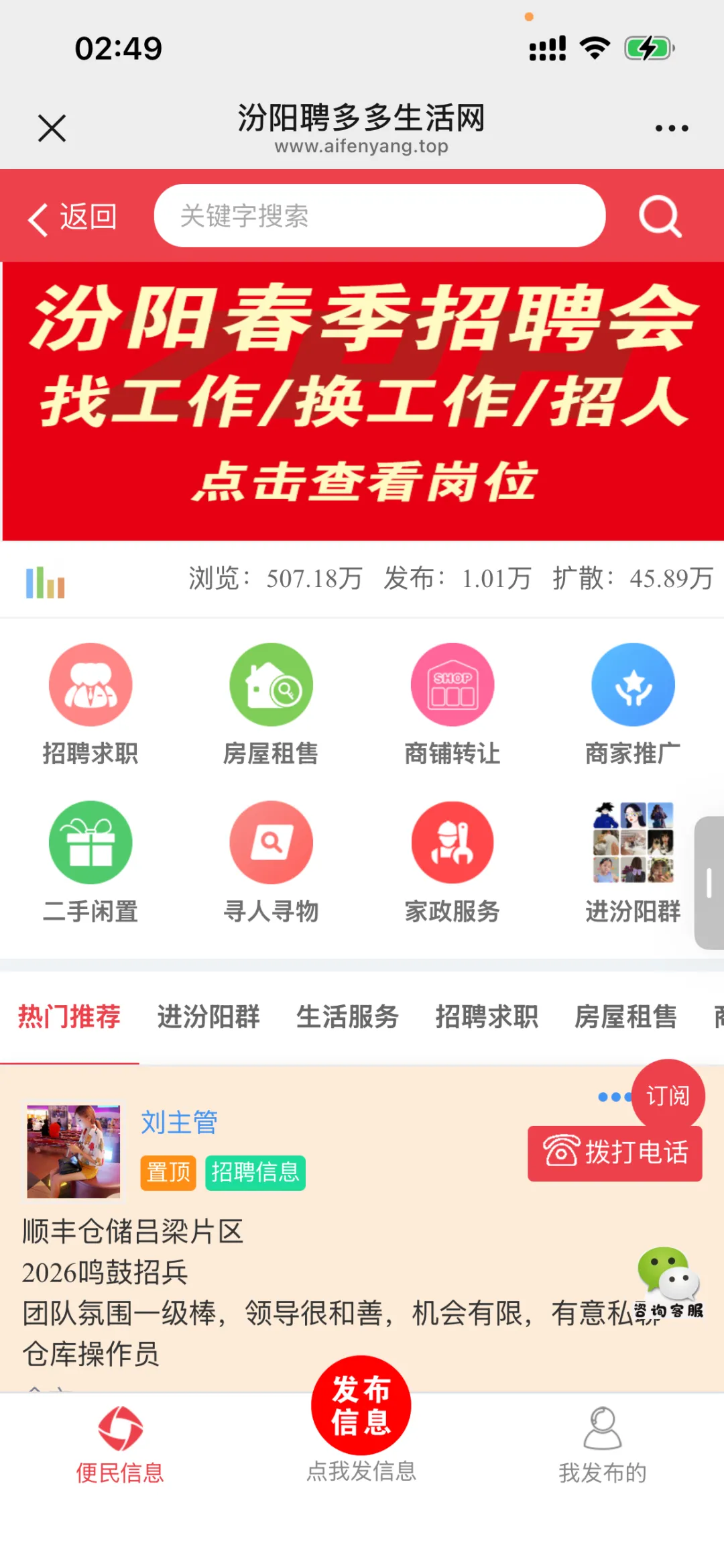 >自助发布!汾阳本地招聘/房产便民信息更新!(3月8日)