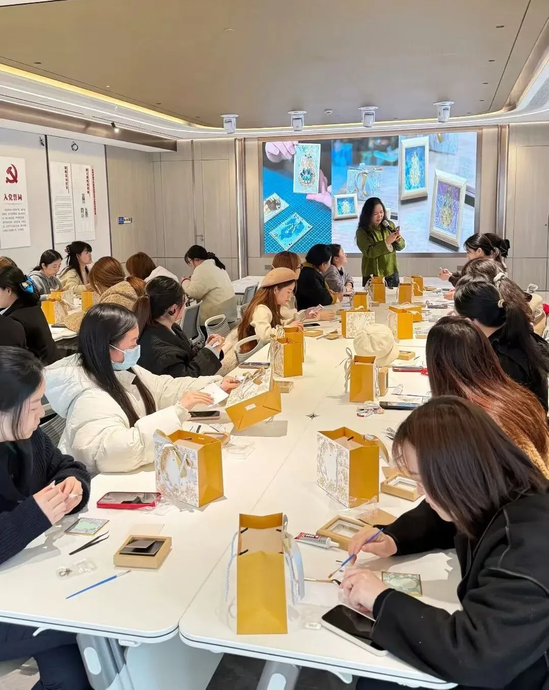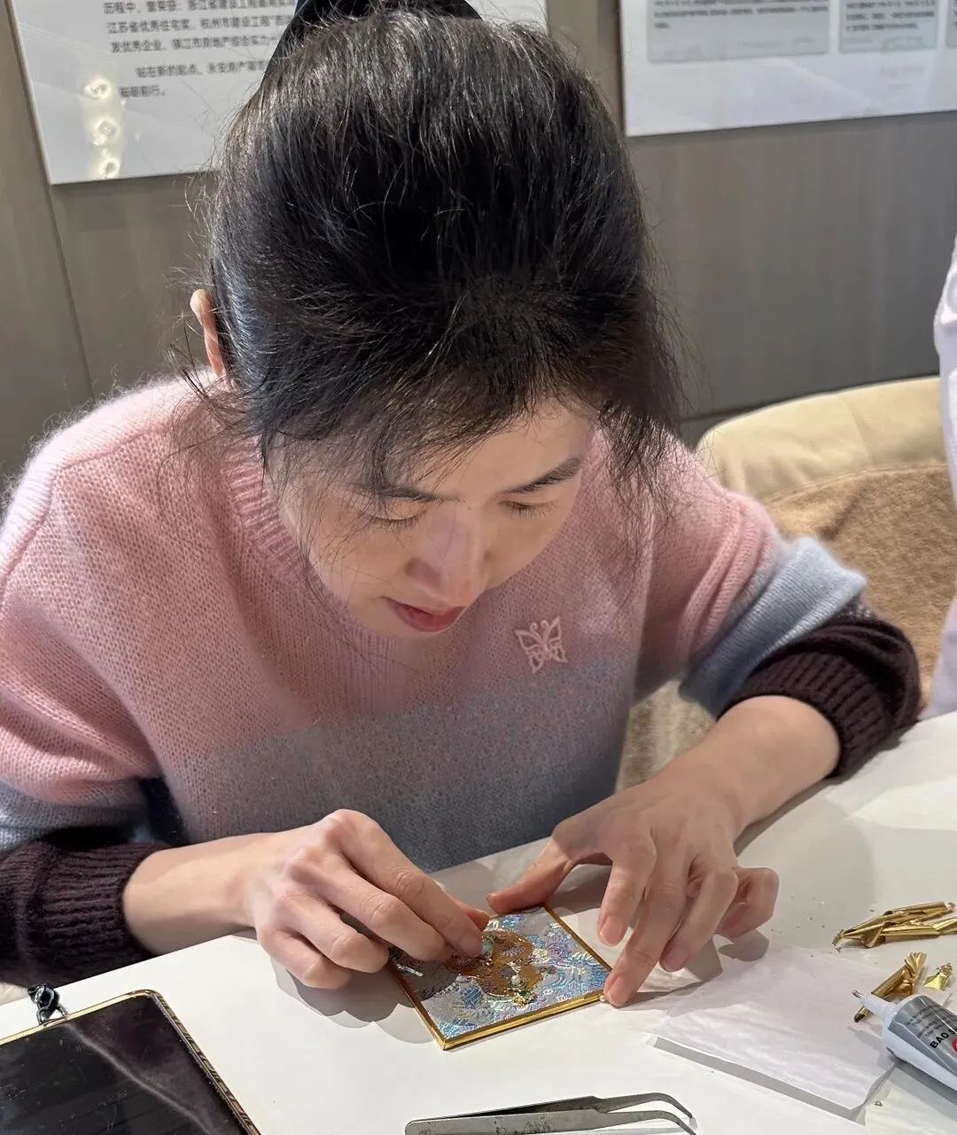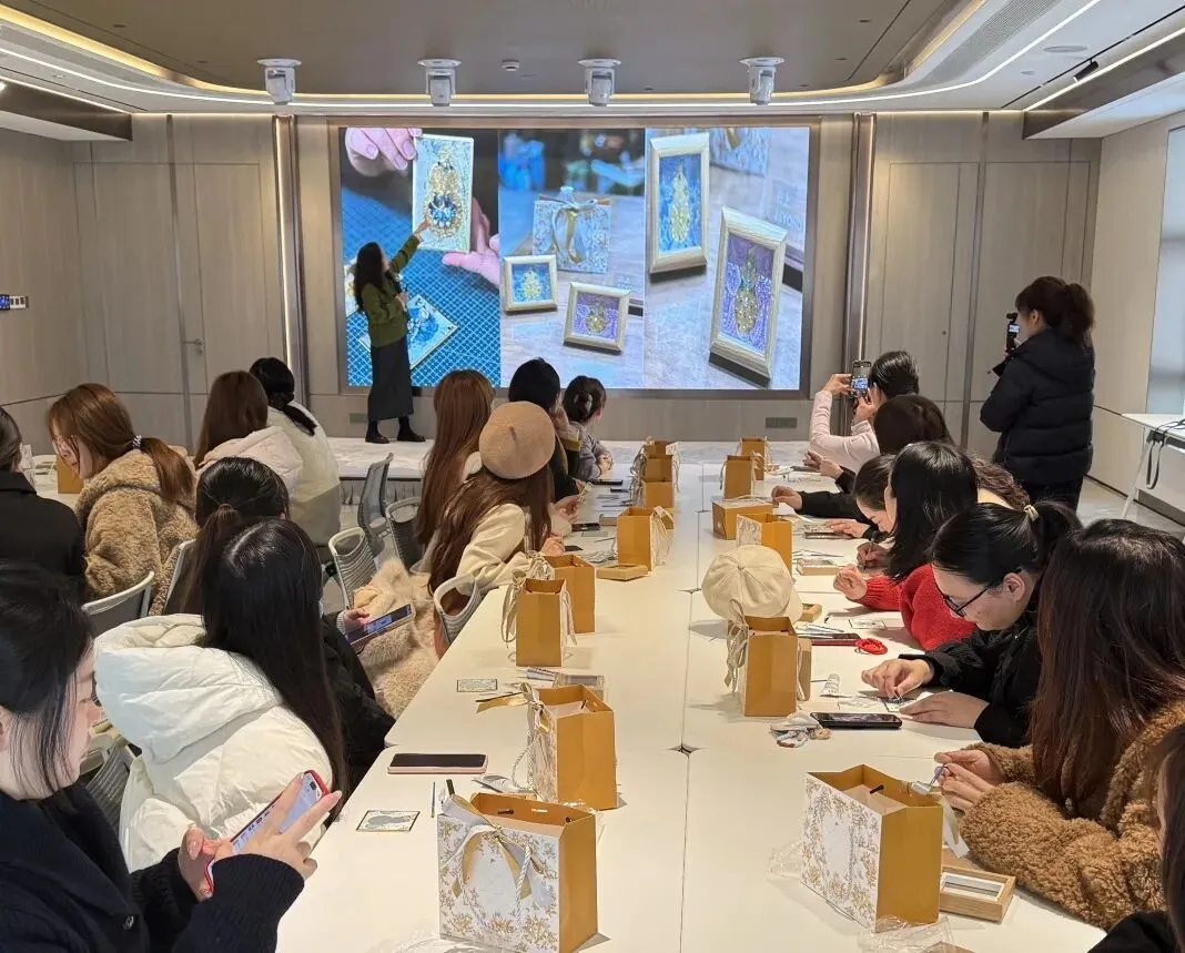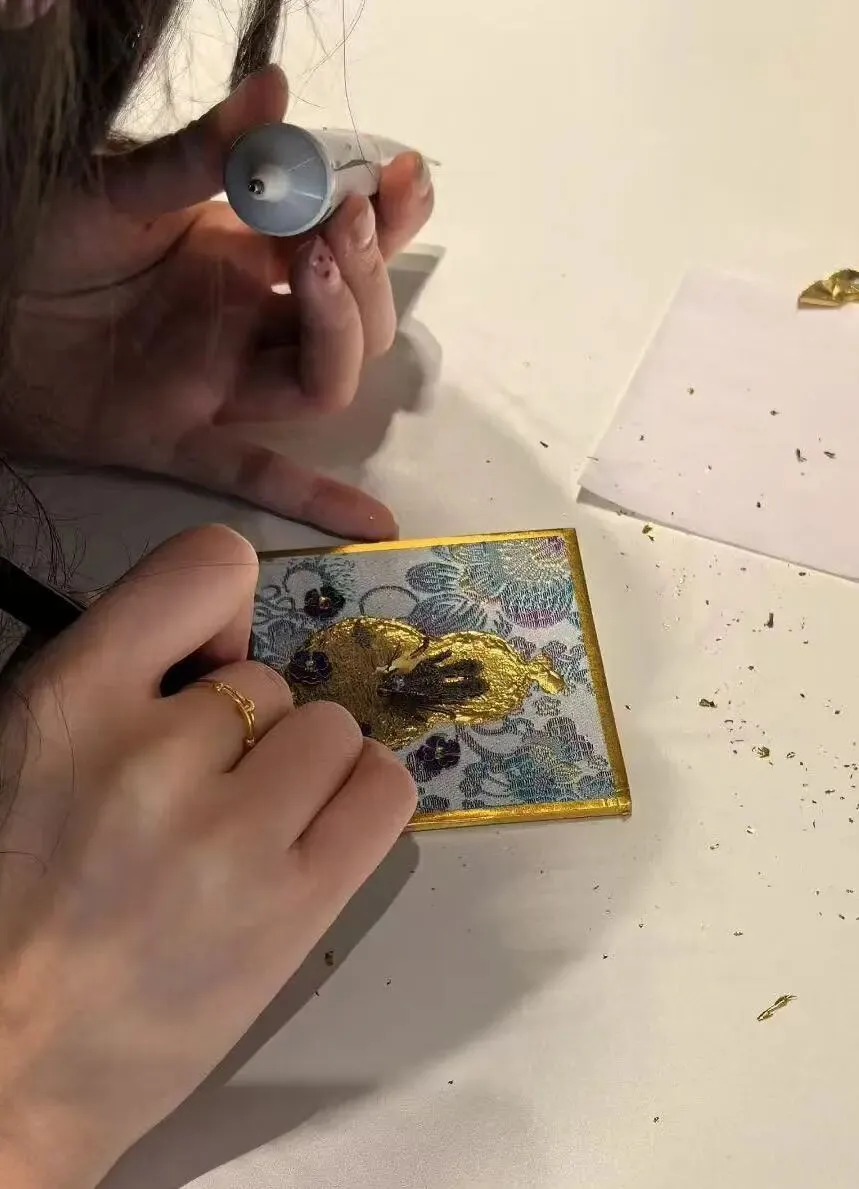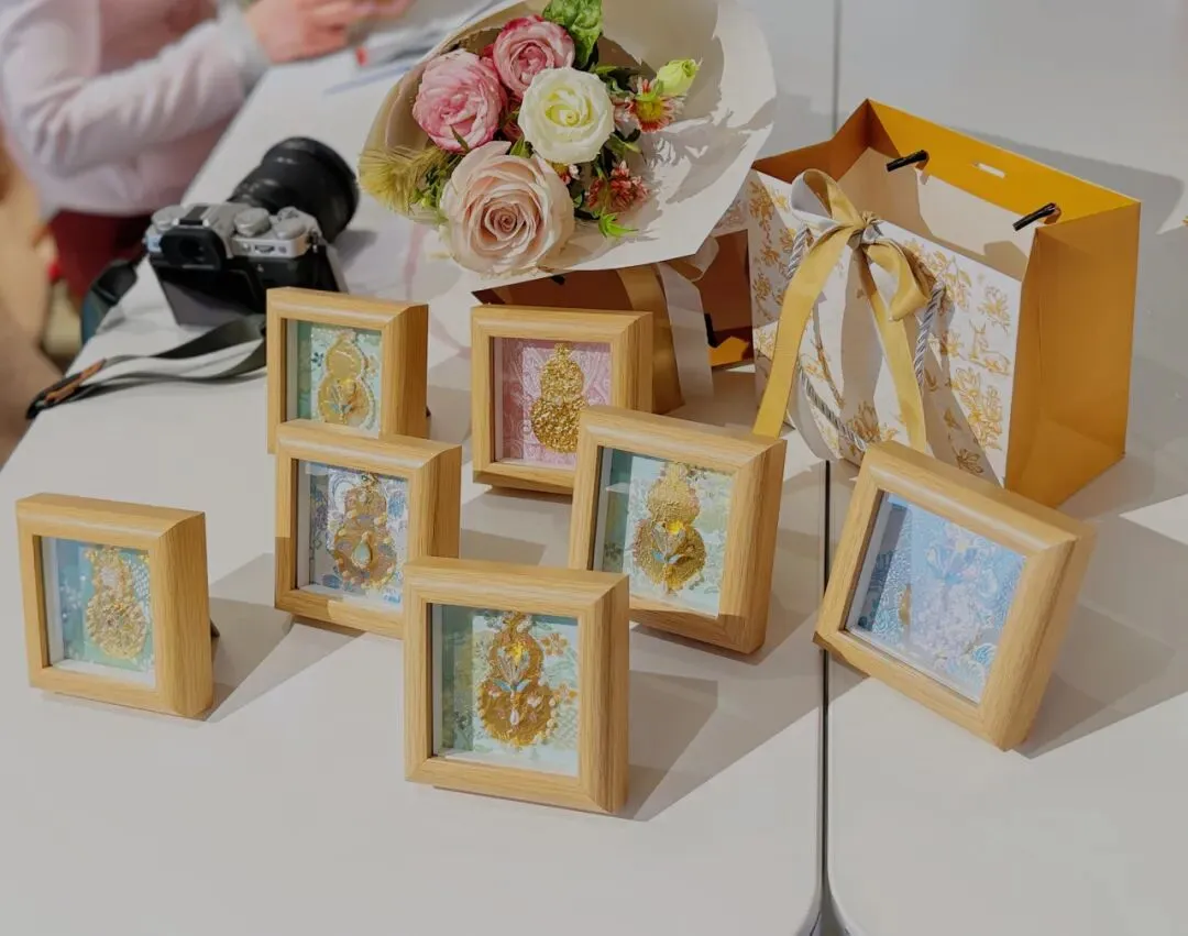 一个个独具匠心的金箔贴画作品渐渐成型,现场暖意萦绕,处处透着雅致与欢喜的氛围。