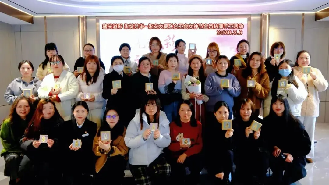 永安房产携手永安大厦联合工会,精心筹备“金箔贴画”手工沙龙、“惊喜抽盲盒”双重节日活动,为永安大厦、永安之星两幢大厦的女神们献上专属温情,让大家在轻松惬意的氛围里舒展身心、悦享美好时光。