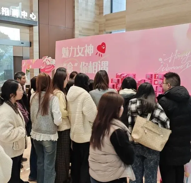 抽盲盒活动深受大厦女性职工的喜爱,现场排起了长长的队伍,大家满怀期待!