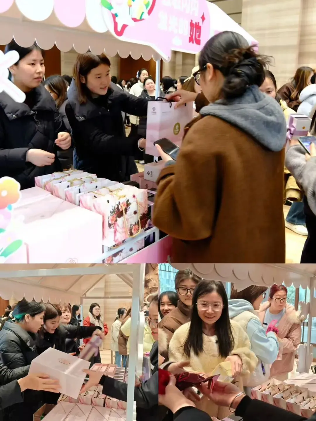 盲盒即抽即开,当场兑奖。拆盒瞬间的惊喜声接连不断,抽到心仪好物的女神们笑意盎然,大家互相分享中奖的喜悦,热闹又温馨的气息萦绕在永安大厦大堂各处,将欢乐的节日氛围推向高潮。