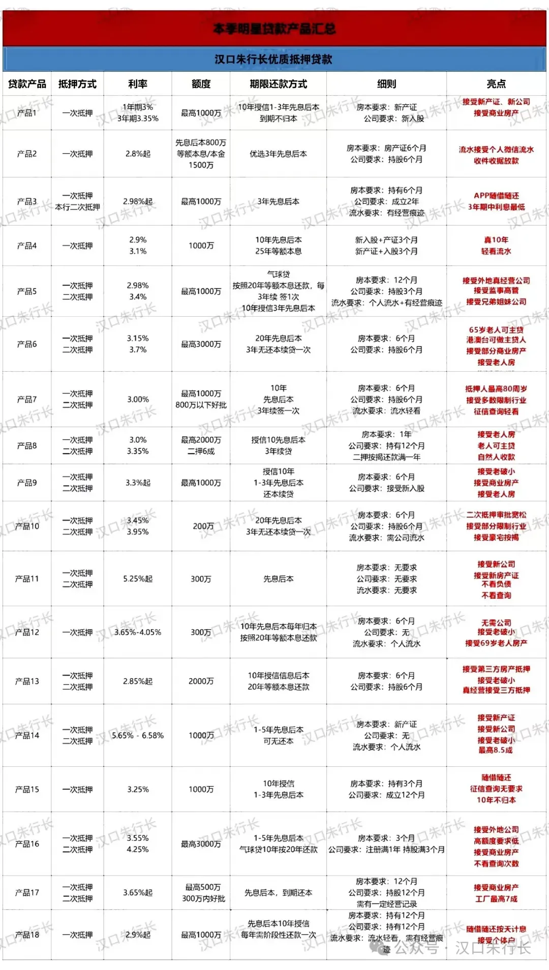 武汉|最新银行抵押消费贷—汇总篇,一共11家银行,年利率低至2.2%,随借随还,最长20年!