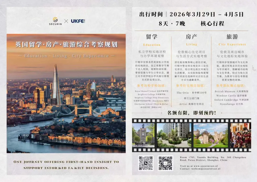 Securin 资产管理团队将带您深入英国房产市场,通过实地考察、市场分析与专业解读,为您展现如何通过科学的投资与管理,构建稳健的海外资产组合,实现财富的保值增值,并与子女教育规划形成长远协同。