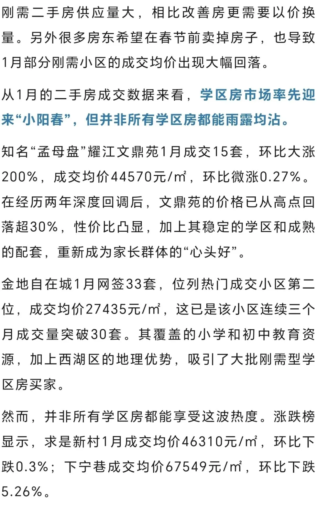这之中,闲林、良渚等板块的小区成交量较大,价格下跌也更为明显。如翡翠城1月成交均价26151元/㎡,环比下跌9.43%;东海闲湖城1月成交均价为17060元/㎡,环比下跌9.83%;爵士风情成交均价10760元/㎡,环比下跌了7.24%。