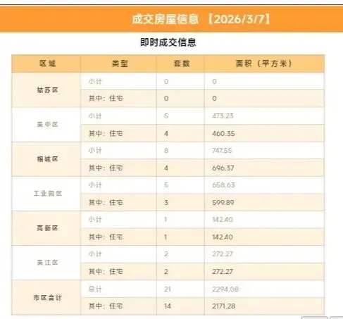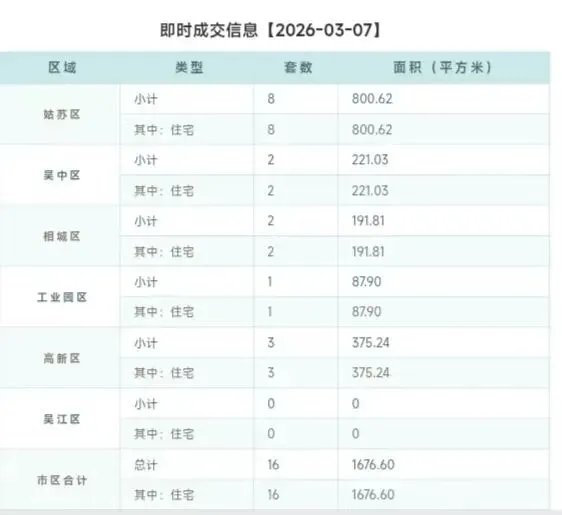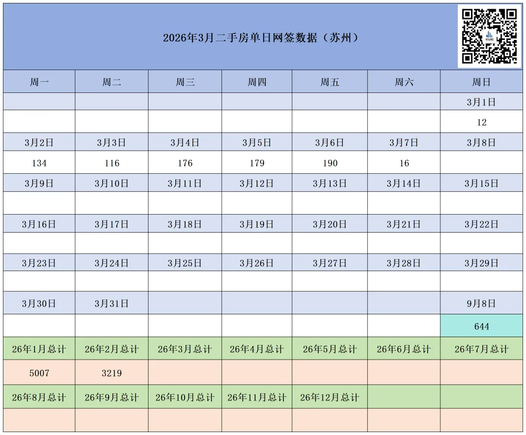 本月截至3月7日(周六),苏州六区住宅累计网签【808套】,其中二手房累计网签【644套】、新房累计网签【164套】。