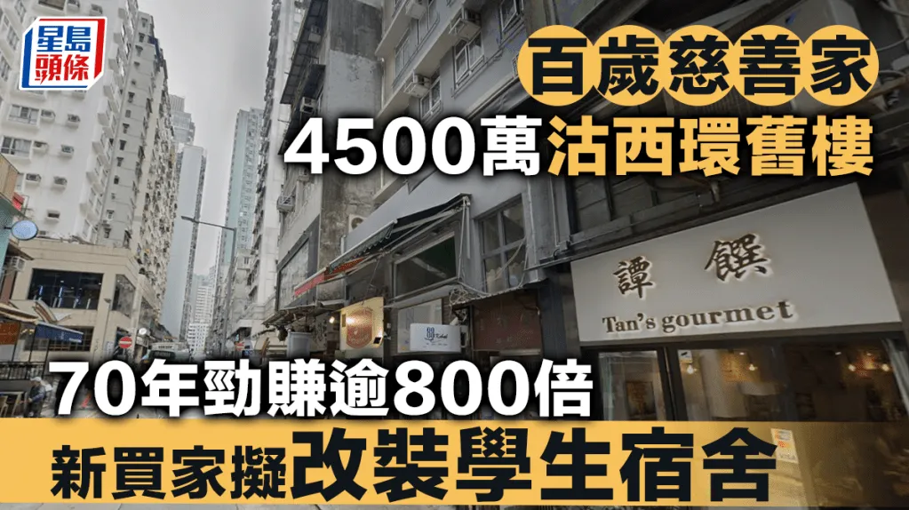 西环高街一幢具特色的旧楼近日易手,全幢物业作价约4500万港元。新买家身份尚未公开,而原业主则为年近百岁的老牌商人罗肇群。他不仅是当押业的老行尊,也是本地知名的慈善家,更是裕泰兴创办人、「九叔」罗肇唐的堂兄。