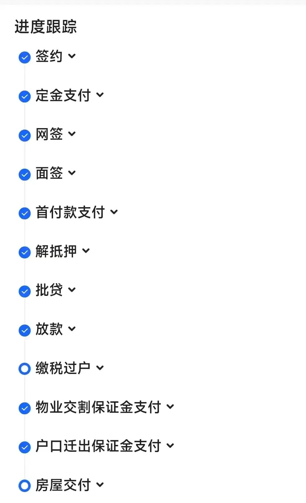 前天小编今年新买的二手房刚刚办完过户手续,到这一步基本大部分的手续就都已经完成了,只剩下最后的交房和物业交割相关的事项,这篇文章小编整理了完整版的二手房交易的完整流程,这里分享给大家,欢迎各位点赞收藏,有买二手房需求的同学可以点进我的主页,查看我基于个人经历整理的买房相关的各种攻略,包括看房、找中介、谈价格等等,希望能给大家带来一点帮助,如果能点个关注就更好啦,小编在这里感激不尽。小编是通过某壳买的二手房,下面这张图是平台买房二手房交易的完整步骤,我将会详细解释每一步要做的事情,准备的资料和需要支付的款项。这一步就是确定双方意向并且谈拢了价格(谈价的完整过程和技巧我会在后面的文章中更新,欢迎关注订阅),在中介平台的签约中心签订购房合同,这里就是为什么建议大家选择大的中介平台进行交易,因为大平台相对流程更完善,保障更多更专业,当然我并不给某壳打广告,只是说就给我本人的体验来说,确实感觉还算靠谱,某壳拟定的购房合同有40多页,里面涵盖了各种要素和条款,包括我之前的文章中提到过的诸如非正常死亡、漏水、周边的垃圾站、墓地、高压电缆等各种需要考虑到的细节,合同当中都有提及,当然合同规定的细节还是需要我们仔细阅读把关,毕竟签了合同就需要承担相应的责任。- 定金,一般是和房子的总价相关,小编付的定金是2万,直接转给业主本人,定金后续在买方支付首付的时候业主需要退还给买家。