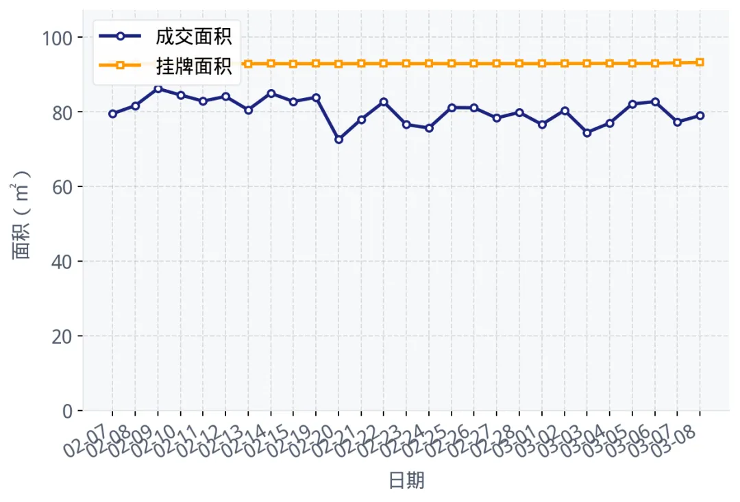 成交平均面积与挂牌平均面积对比趋势(近30天)