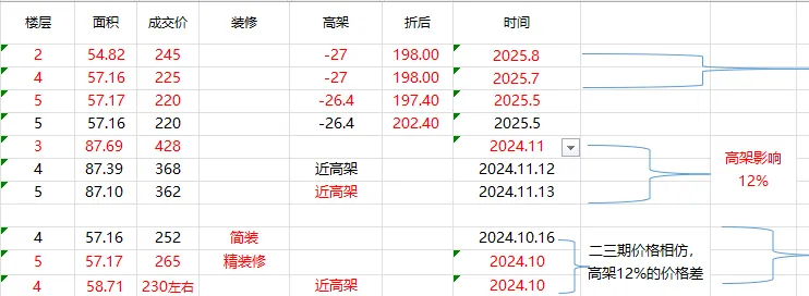 但我们没有。我们团队花了一天时间,去排摸了这个小区历史上同期“靠高架”与“不靠高架”房源的真实成交价差数据拉出来很清晰:两者的价差基本稳定在12%左右