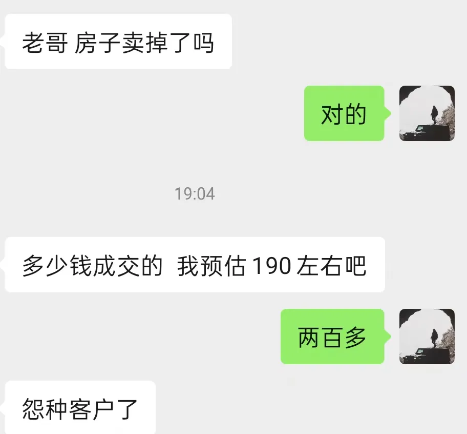 可能有人会觉得:“你们设定的195万底价,是不是低了,所以显的价格不错?”真不是。大家可以看看当地中介在我们成交后的真实反馈