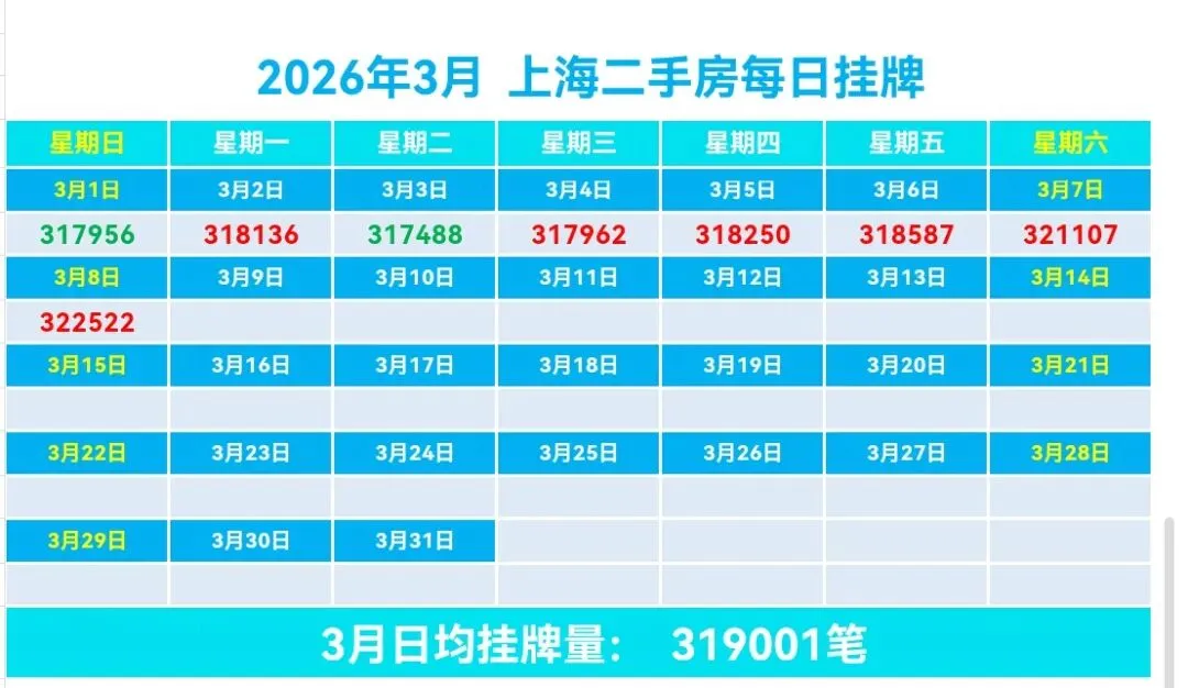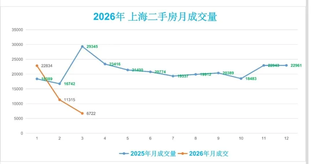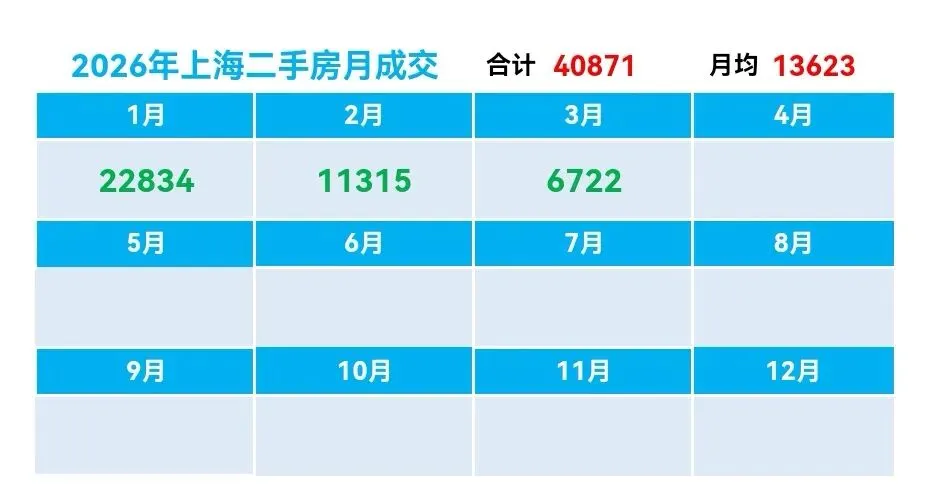 ♻️截止2026年3月8日,2026年上海二手房成交量合计40871套,月均21174套。