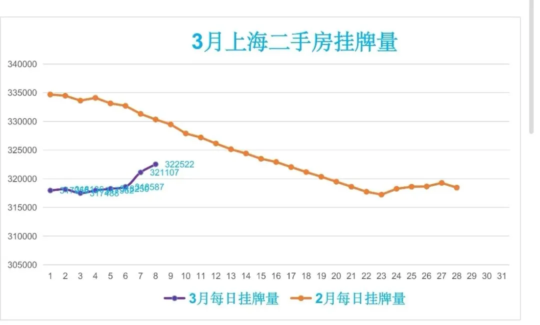 🏠昨日(3月8日,周日)挂牌322522笔,较前一日增加1415笔,日均挂牌319001笔,约31.9万笔,挂牌与实际成交比379:1,去化周期约12.7个月。