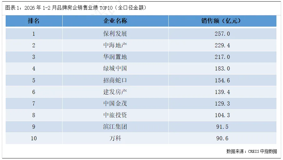 1. 1-2月TOP10房企销售额同比-25%