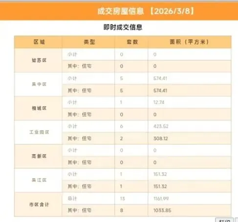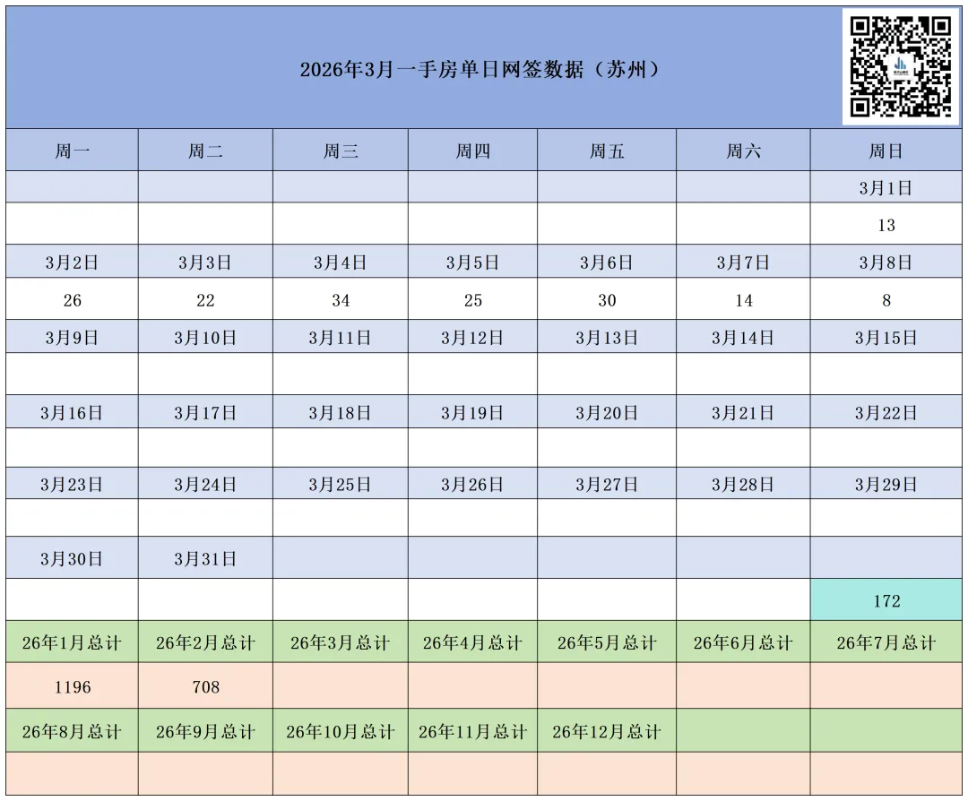 本月截至3月8日(周日),苏州六区住宅累计网签【55套】,其中二手房累计网签【645套】、新房累计网签【172套】。