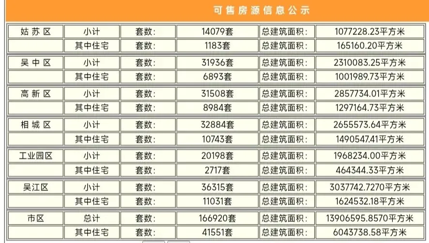 苏州新房住宅可售【41551套】,较上一日减少【8套】。
