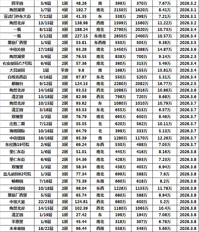 >截止26.3.9西城陶然亭附近二手房成交数据参考