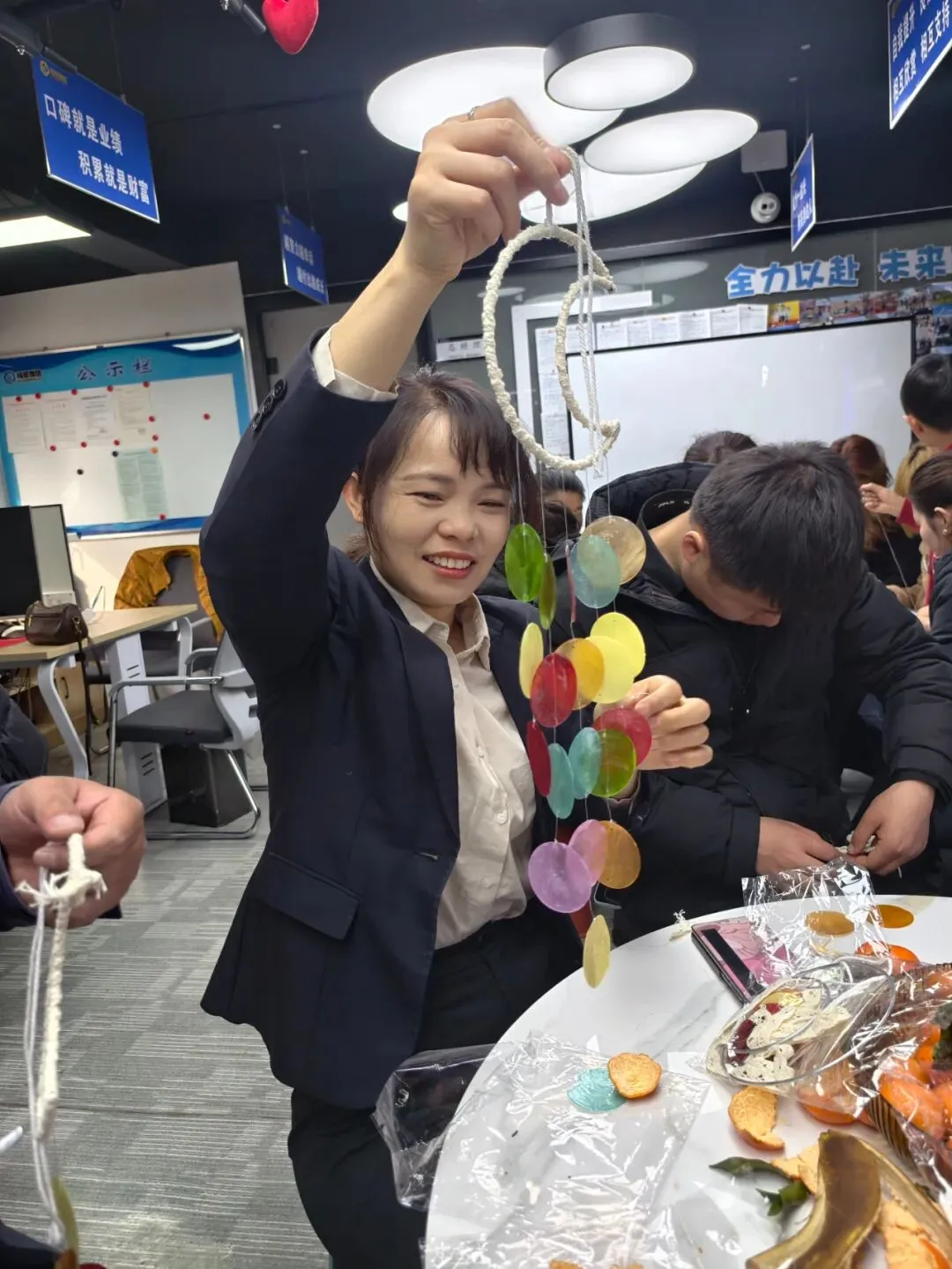活动现场准备了丰富的手工材料,大家可以发挥巧思,亲手制作专属风铃。清脆铃音,承载春日祝福;指尖匠心,传递真挚心意。女同事们在动手创作中放松身心、展现风采,男同事也会将亲手制作的风铃赠予伴侣、母亲,以一份有温度的礼物,表达感恩与爱意,让节日的温馨与浪漫双向奔赴。