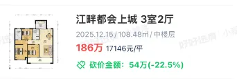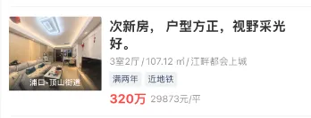 这一数据释放出明确的信号:在经历多轮深度调整后,南京楼市已基本完成筑底,正式进入价格修复通道。令人意外的是,这一轮行情的领头羊,竟然是前期调整最为充分、市场争议最大的——江北新区。以江北最具代表性的江畔都会上城为例。根据好好选房数据显示,该小区近期一套108平米的户型挂牌总价320万元,折合单价近3万元/㎡。回溯到2025年12月,同户型成交均价仅为1.7万元/㎡左右。短短三个月时间,账面价差高达130余万元。