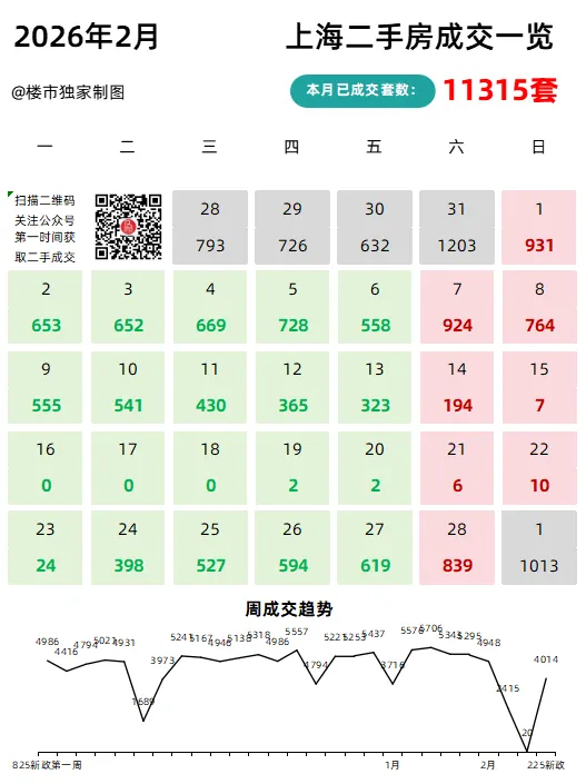 但这个月的意义,不止是11315套这个数字。春节前后的冷清,节后几天的回暖,再加上新政落地后的那波成交——2月的每一天,都在回答大家最关心的问题:市场到底怎么样?接下来这一年的行情,又将如何发展?