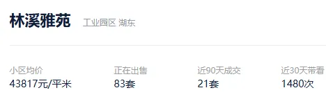 根据贝壳信息显示,林溪雅苑目前83套挂牌出售,挂牌均价43817元/平。