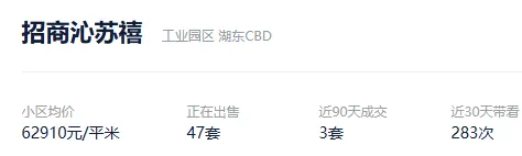 根据贝壳信息显示,招商沁苏禧目前47套挂牌出售,挂牌均价62910元/平。