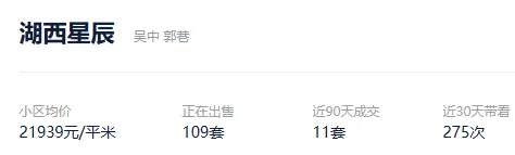 根据贝壳信息显示,湖西星辰目前109套挂牌出售,挂牌均价21939元/平。
