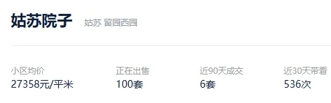根据贝壳数据显示,今年以来,该社区成交了2套二手住房,套均成交面积120.33平,平均挂牌单套总价250万元,挂牌单价20776元/平,平均成交周期420天。