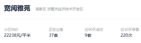 根据贝壳信息显示,宽阅雅苑目前37套挂牌出售,挂牌均价22238元/平。
