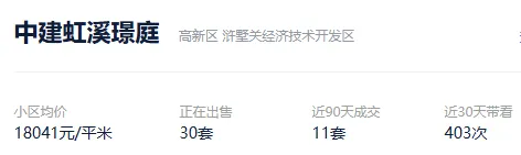 根据贝壳信息显示,中建虹溪璟庭目前30套挂牌出售,挂牌均价18041元/平。