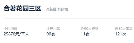 根据贝壳信息显示,合著花园三区目前90套挂牌出售,挂牌均价25870元/平。