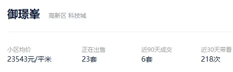 根据贝壳信息显示,御璟峯目前23套挂牌出售,挂牌均价23543元/平。