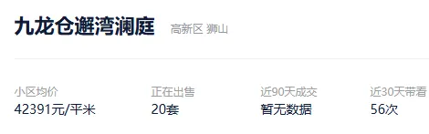 根据贝壳信息显示,九龙仓邂湾澜庭目前20套挂牌出售,挂牌均价42391元/平。