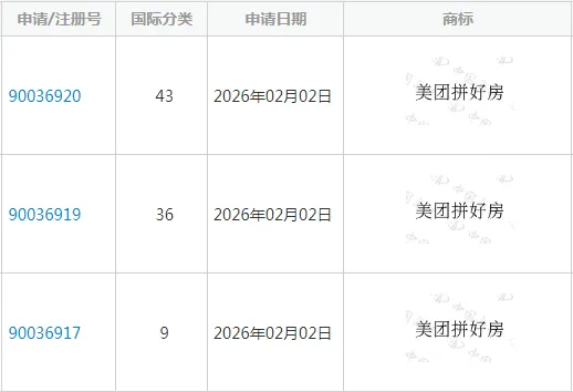 美团此次申请的3类商标颇有深意。科学仪器(第9类)通常涵盖APP软件等互联网服务载体,金融物管(第36类)涉及租房金融、物业管理,而餐饮住宿(第43类)则与美团现有的民宿短租业务直接相关。这三类商标的布局,基本上覆盖了房产交易从信息展示到资金服务再到线下体验的全链条。