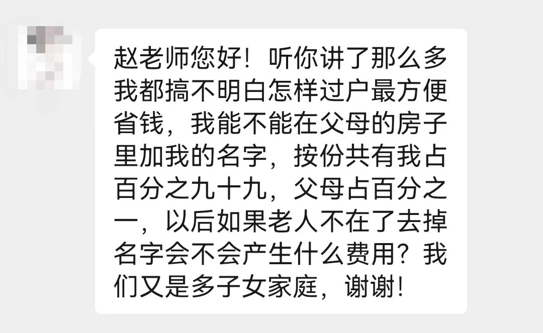 首先回答粉丝关心的问题:房子若是子女与父母共有,那将来子女继承父母的份额,会不会有费用?