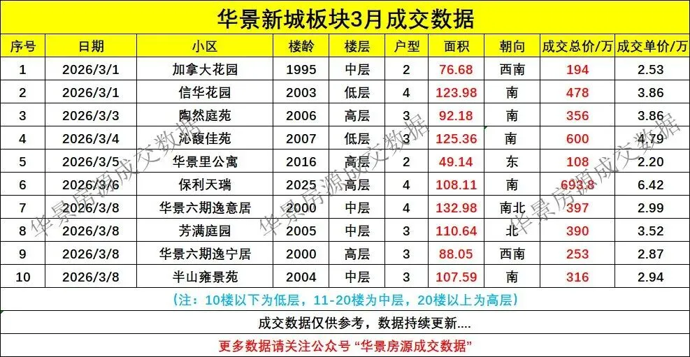 昨晚,卡卡卡,一天卖4套,华景版块二手房成交明细...