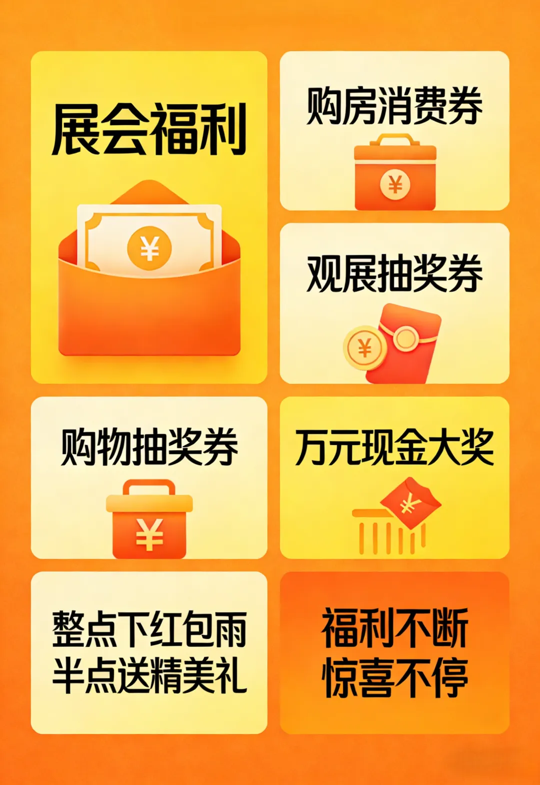 2026东营广电春季家博会涵盖热销楼盘、装修建材、智能家居、厨具卫浴、家具家电、全屋定制等全品类大牌,满足不同消费者购物需求,享受一站式购物体验。本届东营广电家博会重磅福利面向全城派送,更有购房消费券倾情发放!市民到场即可在服务中心领取观展抽奖券,参与好礼抽奖;现场下单消费,每满 1000元即可获得展会专属购物抽奖券,多联购多享券,闭幕式现场抽万元现金大奖。展会期间,整点下红包雨,半点派精美礼,福利不断,惊喜不停!