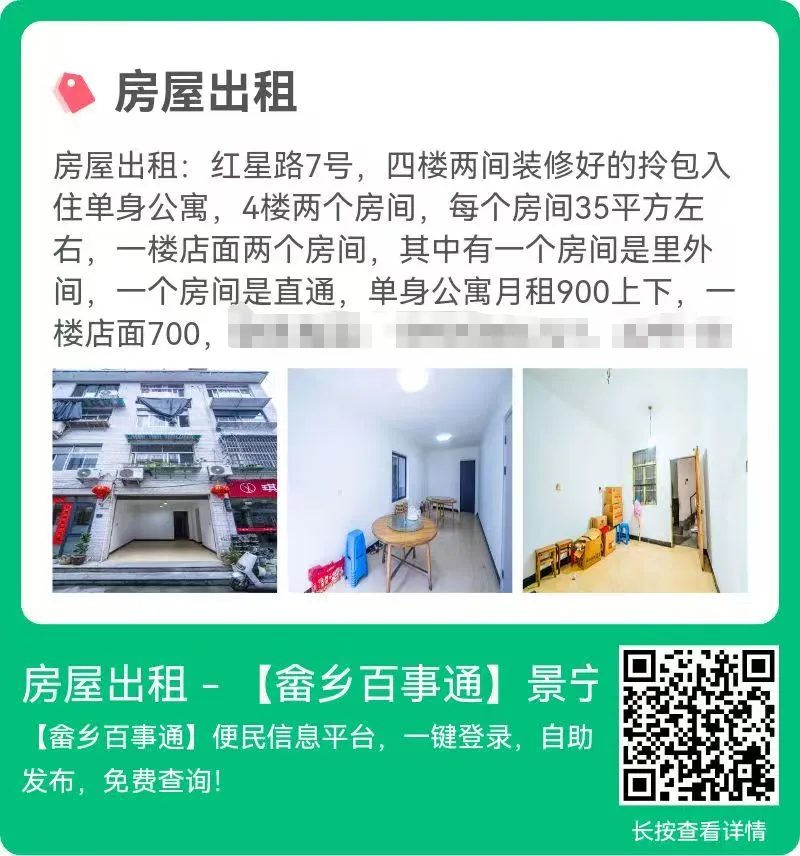 房屋出租:红星路7号,四楼两间装修好的拎包入住单身公寓,4楼两个房间,每个房间35平方左右,一楼店面两个房间,其中有一个房间是里外间,一个房间是直通,单身公寓月租900上下,一楼店面700。