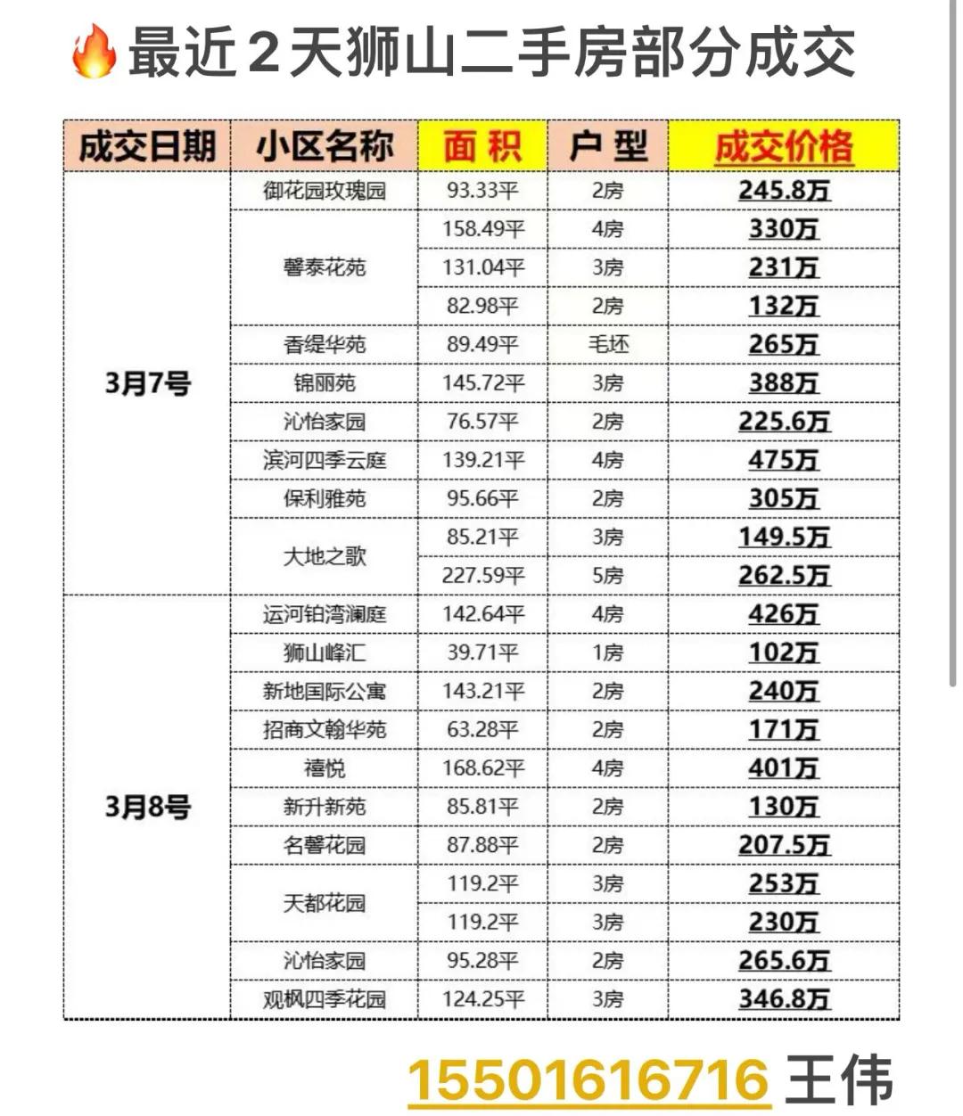不亏是一年一度的卖学区房,高峰期啊!总体来说,年后的价格,是比年前的价格,大部分成交价格都卖高了一点。我一直说,聪明的客户,年前把学区房,就定好了。这几天的成交价,说明了一切。这几天,我们联系的房东,普遍都是没有年前着急了,没有之前好谈了,都不怎么愿意降价太多卖了,有的说,我都等这么久了,也不着急这两个月了,其实房东们是知道的,3,4月,客户必定要买学区房,他可以等,客户的小孩不能等。大不了,这两个月卖不掉了,价格在下来卖。现在只要不降价,说不定,还能多卖点。现在阶段,又进入了,双方博弈期,去年狮山的次新盘,投资客砸盘,导致了二手房价格跟着往下走。现在这些次新小区的投资客,都已经走完量了,明显能感受到,现在的次新房的价格,稳住了,这几天的成交价格,普遍比年前高了。