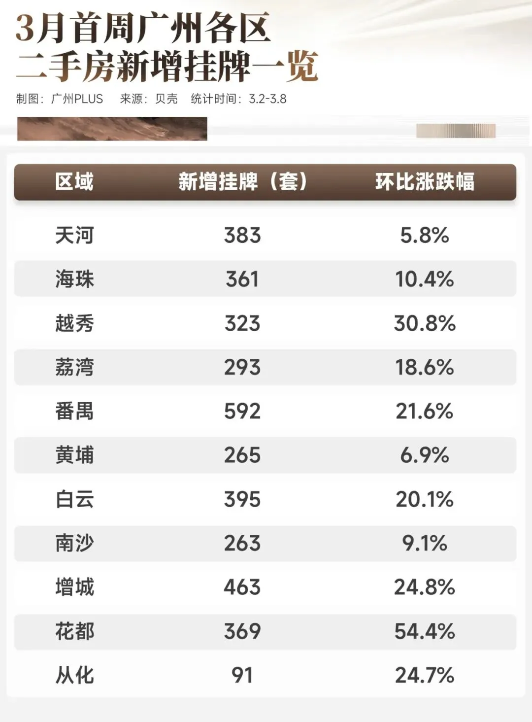 3700多套里面,番禺占了大头,干到近600套,其次是增城,新增463套,两者环比都涨超2成。