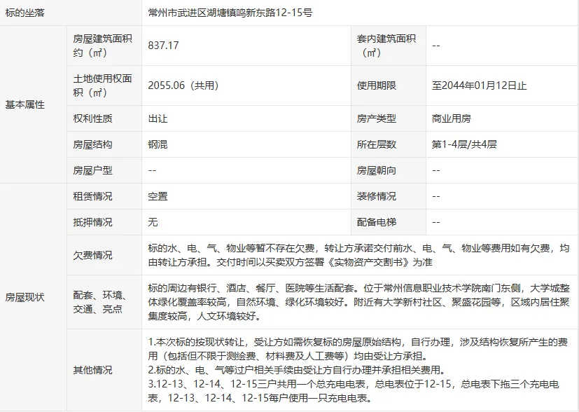 【房产转让】常州市武进区湖塘镇鸣新东路12-15号商业用房转让